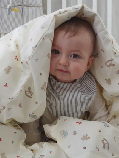 Gestickte Babybettwäsche, 70x100cm - GOTS - Vintage Toys